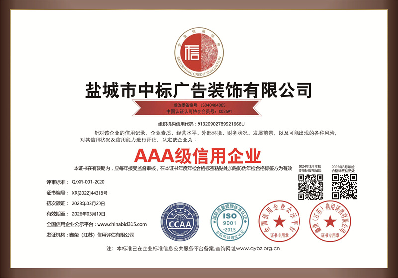 After years of exploration and hard work, the bid winning advertisement has opened branches in Luming Road, Liyang square, Huanghai Road, Ping'an Road, zhaoshang mall, Baima mall, Dayang small and medium-sized enterprise park and other places in Yancheng. The company's light box factory has also expanded from Yancheng area to Wuxi area. Now we have advanced equipment, broad service fields, high quality and low price products. We are confident that we can meet customers' requirements for modern advertising decoration. At the same time, we are determined to constantly update ourselves and ensure to provide cutting-edge services for customers.